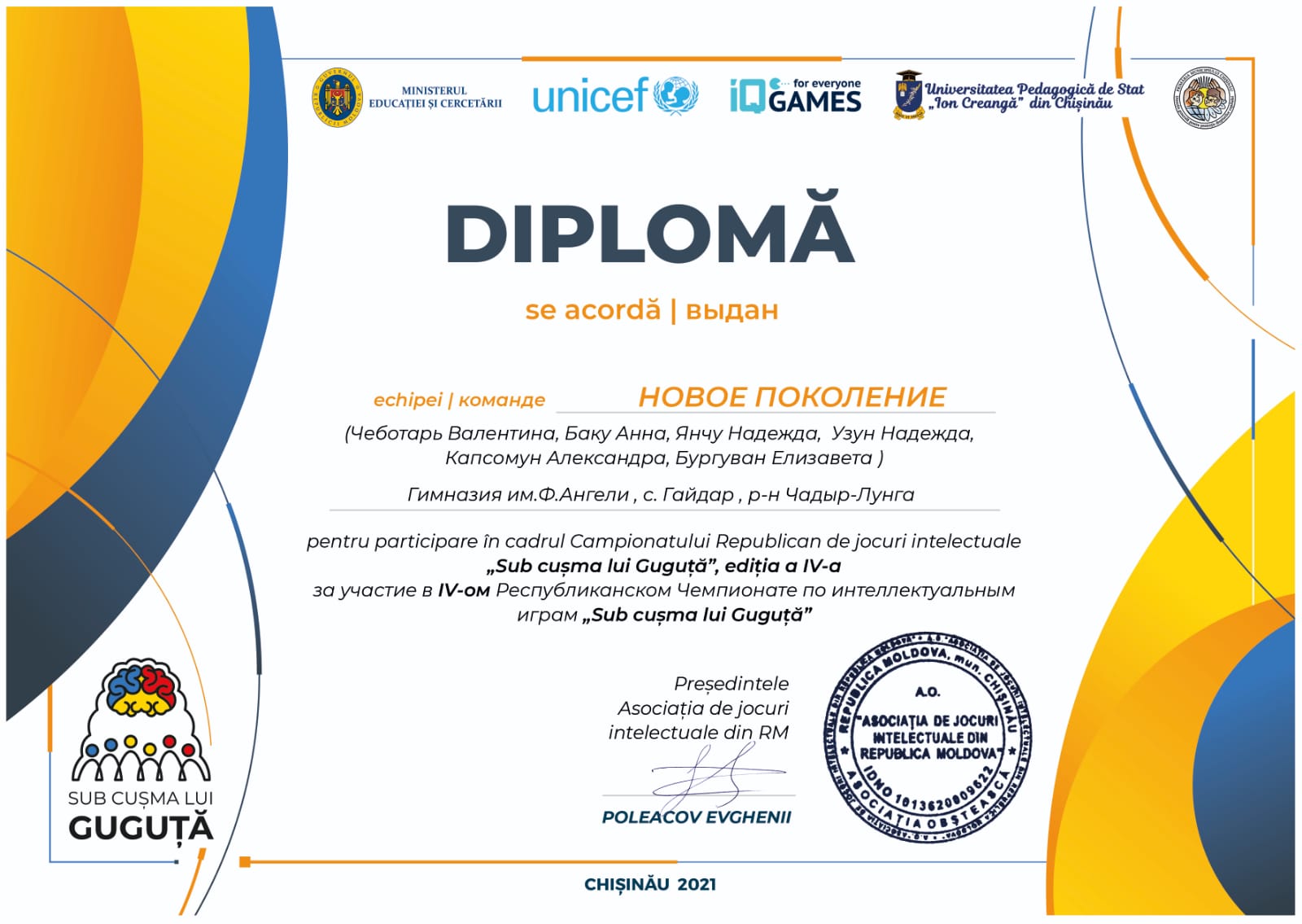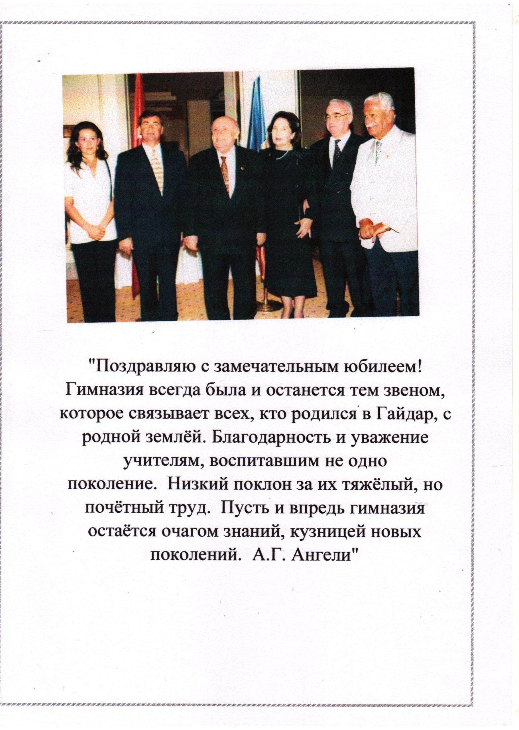 Администрация и педагогический коллектив гимназии им Ф.А.Ангели выражает благодарность и признательность всем ветеранам: Бызыкчи М.П., Гайдаржи И.Г., Куру Н.Г., Узун Г.В., Карагиоз М.В., Сороколетней М.Н., Чебан Л.С., Кюркчю П.С., Узун И.И., Куру Е.П., Чеботарь Н.Ф., Челак Е.П., Каланской А.П.