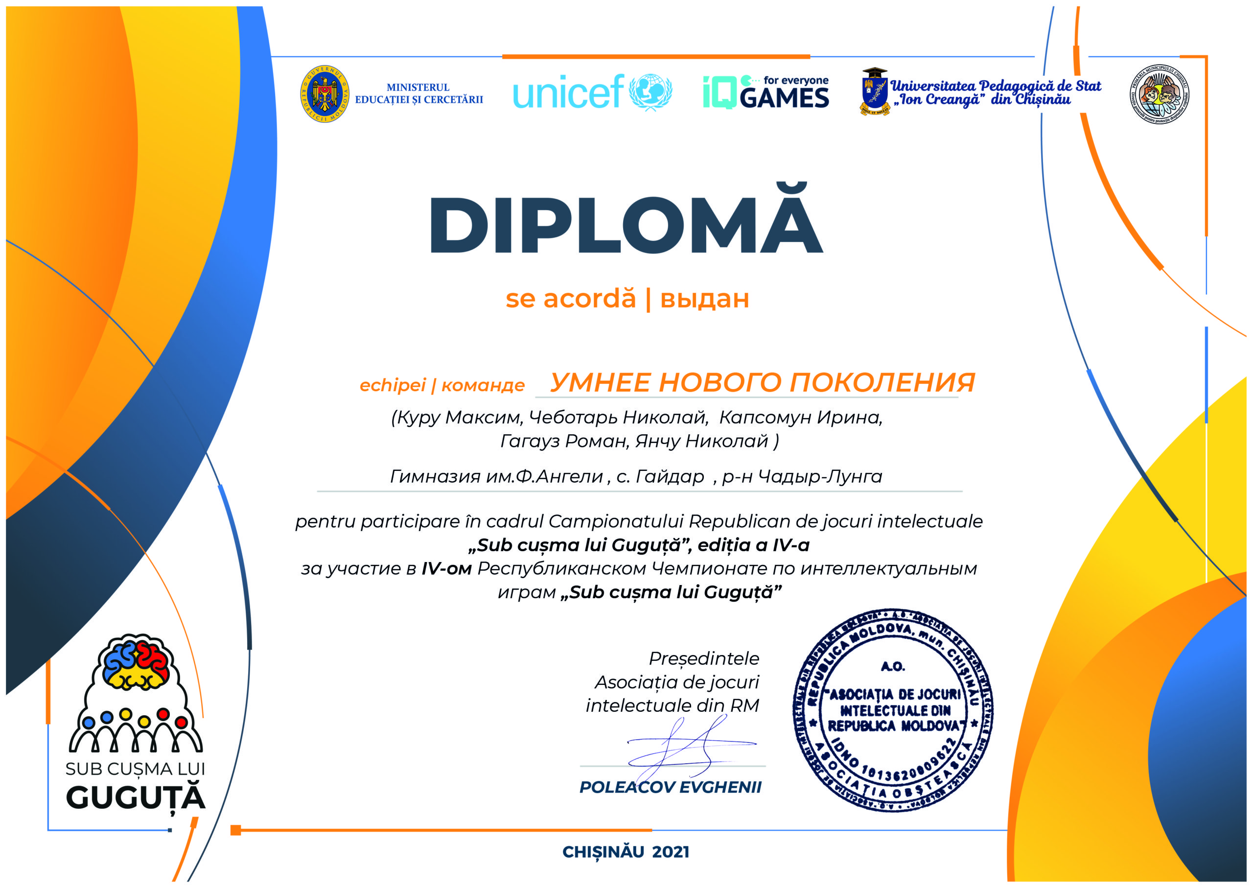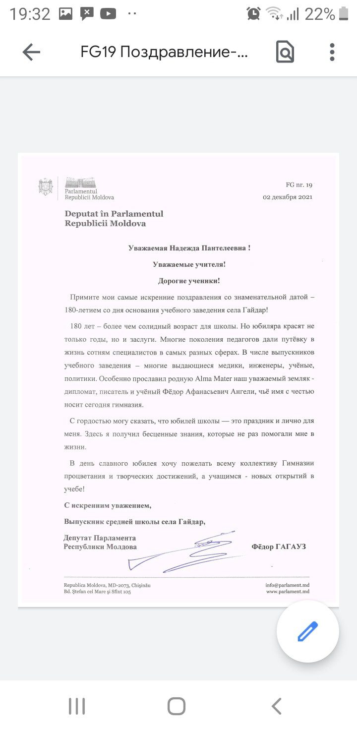 Огромная благодарность депутату Парламента РМ Гагауз Федору Никодимовичу и Аиде Гавриловне Ангели за бесценные дары в читальный зал и библиотеку гимназии.